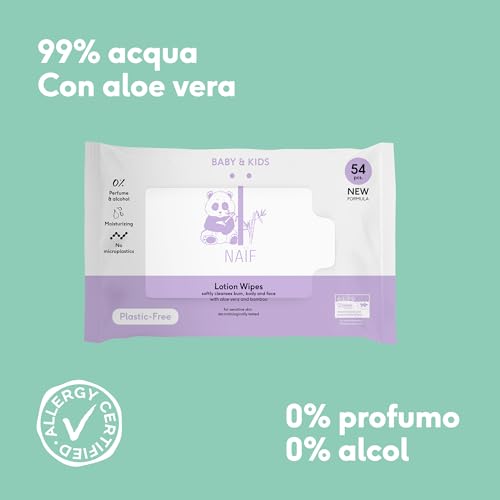 Naïf – Plasticvrije lotion vochtige doekjes – 162 stuks (3 x 54 vochtige doekjes) – voor baby & kind – babypopo, lichaam, gezicht – zoals aloë vera en bamboe – 0% parfum en alcohol