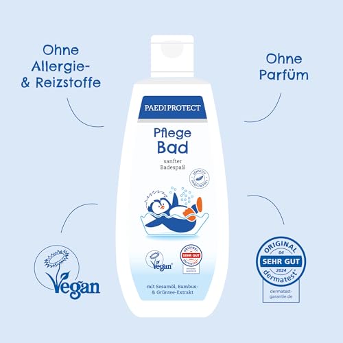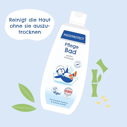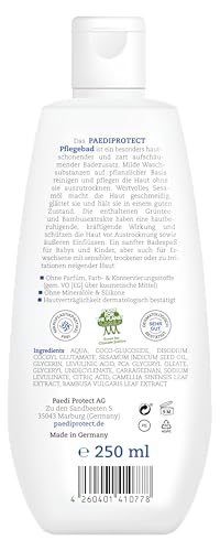 PAEDIPROTECT badtoevoeging baby & kinderen 250 ml, zonder parfum & microplastic, huidvriendelijk schuimbad verzorgt en reinigt de huid, hydrateert en beschermt, wasgel als ontspannend bad