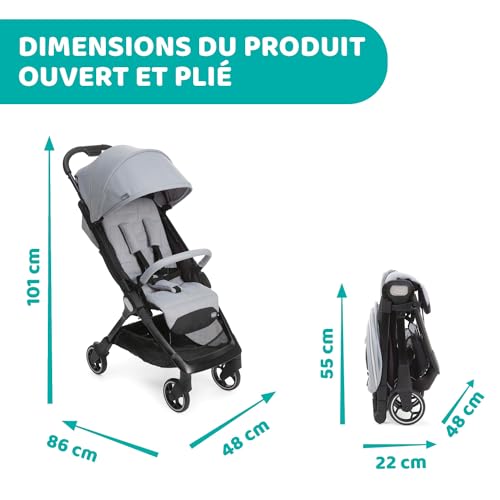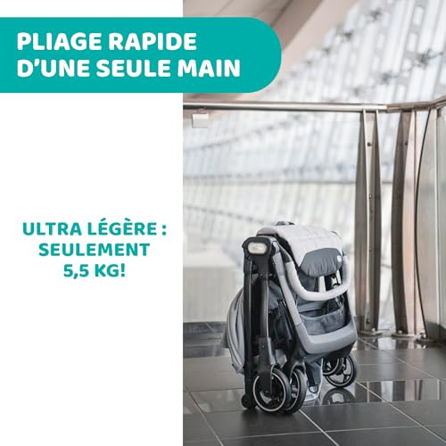 Chicco We kinderwagen, opvouwbaar, ultralicht, van 0 maanden tot 22 kg, kantelbaar, met slaappositie, gevoerde schouderbanden, compacte sluiting, overtrek en regenbescherming, cool grijs