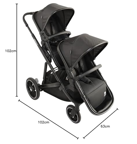 Deryan EVY V2 kinderwagen voor 2 kinderen – voor pasgeborenen, kleuters & kinderen in de voorschoolse leeftijd – baby buggy tot 50kg – babywagen – reiskinderwagen 2-in-1 complete set – Zwart