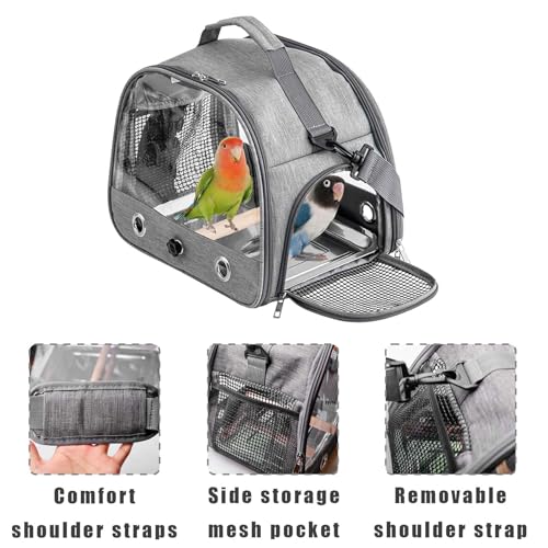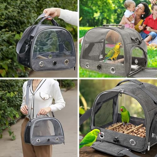 Reisreistas voor papegaaien Comfort: Onze reistas voor huisdieren voor papegaaien is uitgerust met een afneembare schouderriem. In de netvakken aan de zijkant kunnen snacks en kleine voorwerpen worden opgeborgen, zodat je je huisdier comfortabel kunt meenemen.