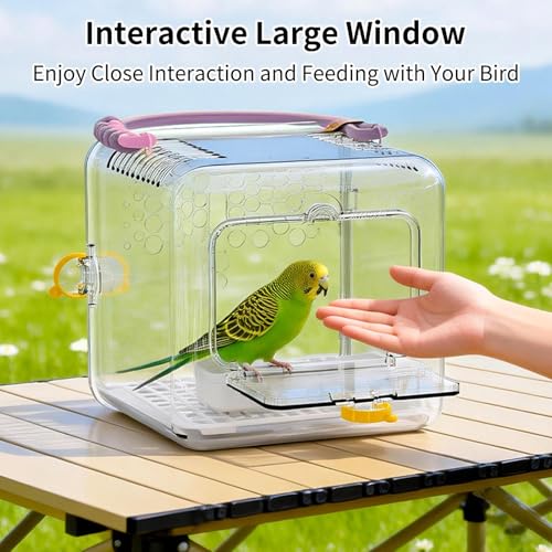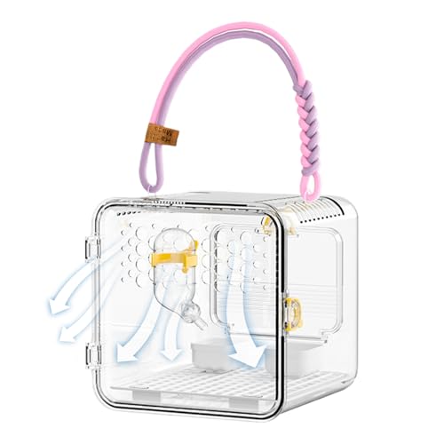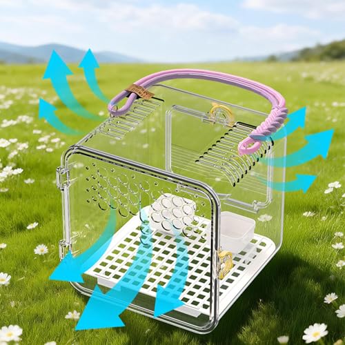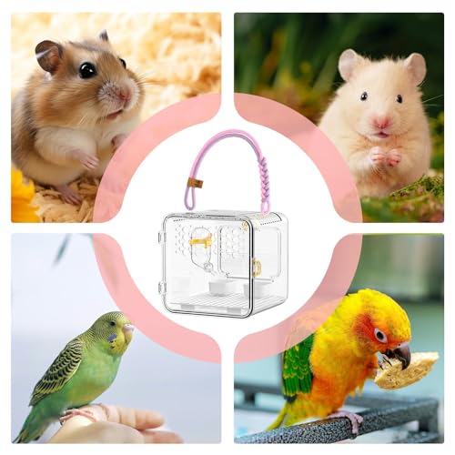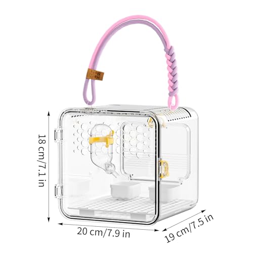 Uсcelli transportbox voor vogels, ademend, transparant, voor vogels, parkieten, hamsters, vliegende eekhoorns, inclusief waterfles en voedselkihotel