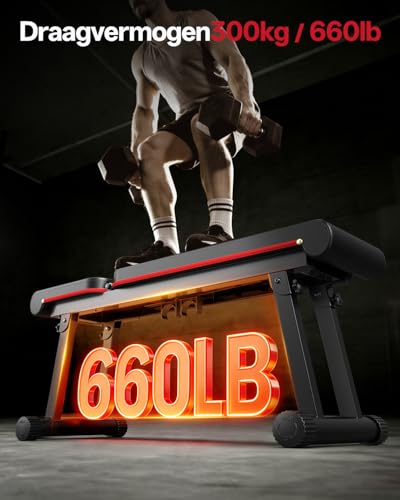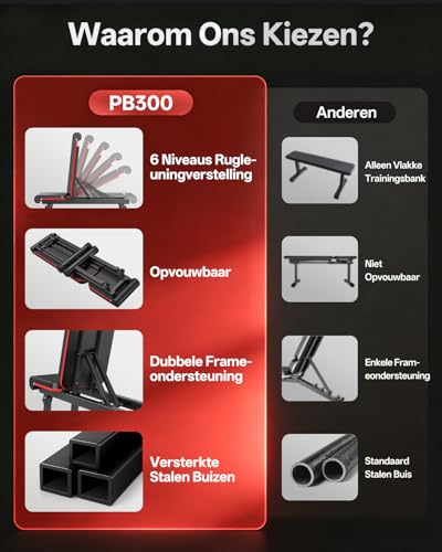 PASYOU Halterbank Verstelbaar, Inklapbare Plat Fitnessbank met 300KG Draagvermogen, 6-Niveaus Inclinaison Trainingsbank voor Thuisgym, Dubbel Frame (Model: PB300)