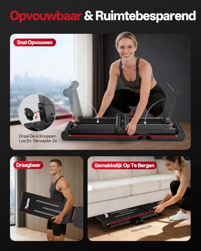 INKLAPBAAR & RUIMTEBESPAREND: Deze fitness bank inklapbaar opklapbare heeft een gebruiksvriendelijk inklapmechanisme met draaiknop. Met een compact formaat van 104*28*14,3cm in opgevouwen toestand, neemt hij weinig ruimte in beslag, is hij gemakkelijk te verplaatsen en op te bergen, en dankzij de antislipvoetjes past hij in elke trainingsopstelling