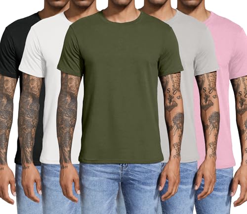 Boyzn Heren 3, 4 of 5 Pack Katoenen T-shirts, Korte Mouw Ronde hals Sport Tees, Katoen Gym Workout Running Shirts voor Mannen