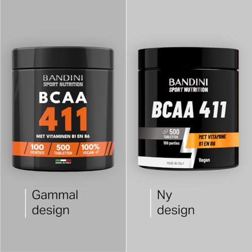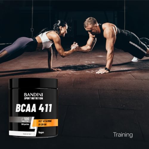 💪 HOGE PRESTATIES. Voedingssupplement met vertakte-keten aminozuren in een uitgebalanceerde 4:1:1 verhouding en verrijkt met vitamine B1 en B6. Verpakking van 500 tabletten, voor in totaal 100 porties. De BCAA 411 aminozuren van Bandini Pharma zijn getest om vetvrije spiermassa te behouden en op te bouwen. Ze leveren de juiste dosis Leucine, Valine en Isoleucine als aanvulling op voeding en sportvoeding.
