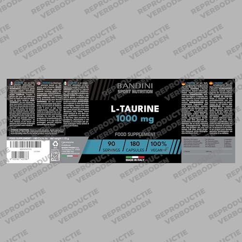 Bandini® Taurine Supplement zonder Magnesium Stearaat, 180 Taurin Capsules 1000mg per Portie, Puur L-Taurine Poeder Hoge Dosis (3 Maanden), Pre/Post Workout Essentiële Aminozuren, Vegan L-Taurin