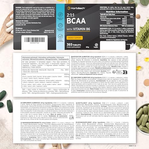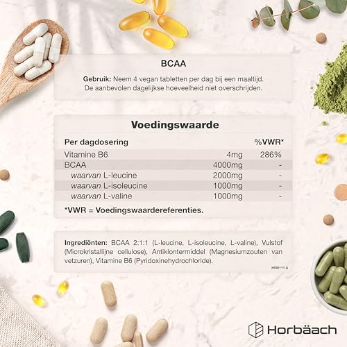 BCAA Tablets 4000mg | Aminozuren 2 1 1 Tabletten | 365 Veganistische Tabletten | BCAA Supplement met L-leucine, L-isoleucine en L-valine & Vitamine B6 voor optimale resultaten | van Horbaach