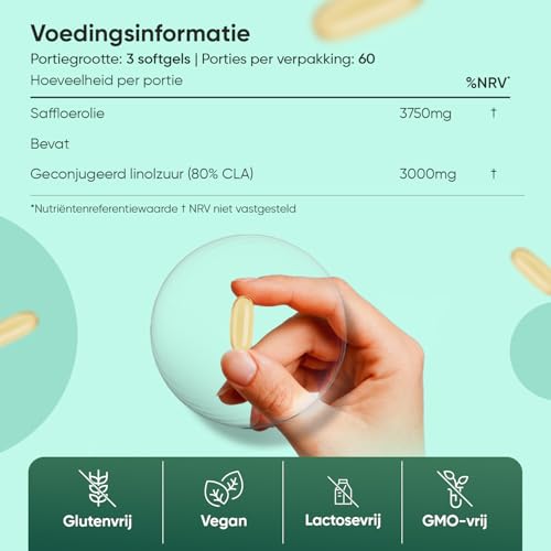 3000 mg per dagelijkse portie – Dit supplement bevat per dagelijkse portie 3750 mg saffloerolie (80% CLA), wat neerkomt op 3000 mg CLA. CLA is een populair supplement onder sporters en geschikt voor zowel mannen als vrouwen.