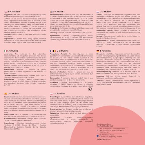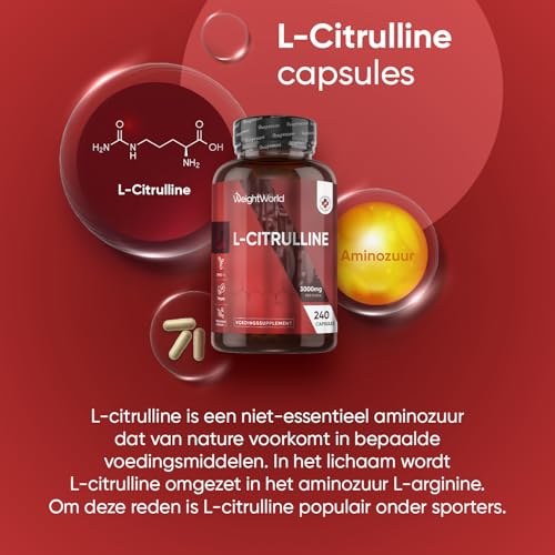 L-Citrulline capsules – 3000 mg – 240 vegan capsules voor 2 maanden – Voorloper van het aminozuur L-arginine – Populair onder sporters – Geschikt voor mannen en vrouwen – Van WeightWorld