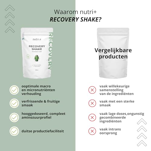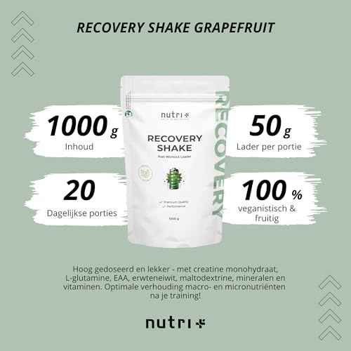 nutri+ POST WORKOUT Recovery Shake – spieropbouw en bodybuilding – 1 kg grapefruitpoeder – maltodextrine – eiwitpoeder – BCAA – creatinemonohydraat – glutamine – veganistisch supplement