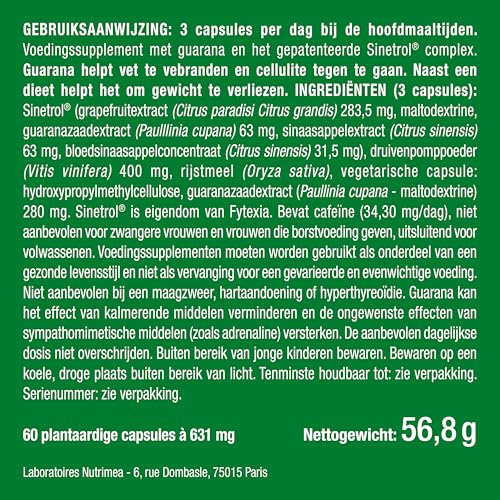 GEPATENTEERDE ACTIEVE EN BEWEZEN EFFECTIE: Sinetrol is een gepatenteerde actieve stof die guarana en citrusextracten bevat. Het bevat meer dan 40% flavonoïden, voornamelijk naringine en hesperidine die van nature voorkomen in citrusvruchten. De doeltreffendheid van Sinetrol is onderzocht in 4 klinische studies bij 300 personen met overgewicht of obesitas.