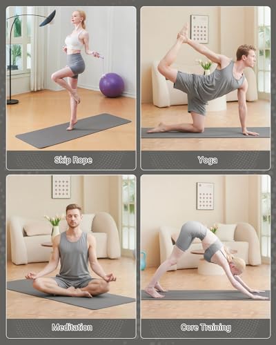 Veelzijdig en draagbaar: Onze yogamat is middelzwaar en kan gemakkelijk worden opgerold en overal mee naartoe worden genomen, zowel voor mannen als vrouwen. Een gratis draagriem is inbegrepen, zodat je je yogamat mee kunt nemen naar de sportschool, naar buiten, in het park en daarbuiten. De yogamat kan worden gebruikt voor oefeningen, picknicks, kamperen, reizen en nog veel meer.