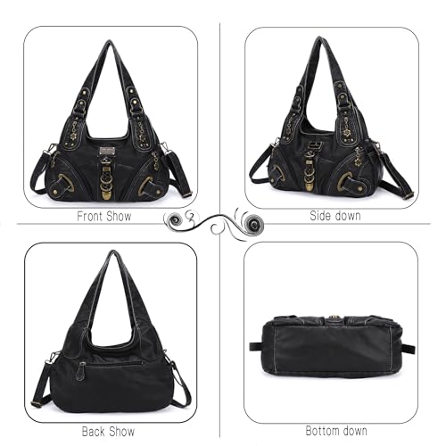 Angelkiss Hobo Portemonnees en Handtassen voor dames, schoudertas, groot, voor dagelijks gebruik, 801 zwart