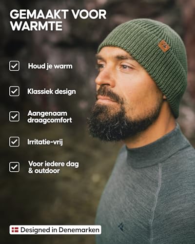 DANISH ENDURANCE Merinowol Beanie, Thermische Herfst Winter Muts, Gebreid, voor Mannen en Vrouwen, Unisex