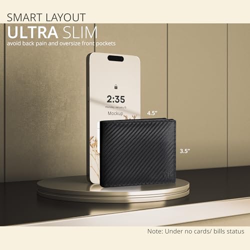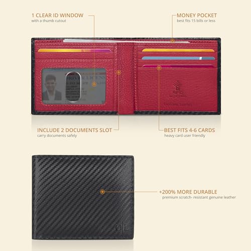 Specificaties: Echt lederen portemonnee voor heren – RFID Slim Bifold Creditcard ID Minimalistische Dunne Portefeuilles Cadeau voor Mannen, Zwart Koolstof/Rood, S, Casual