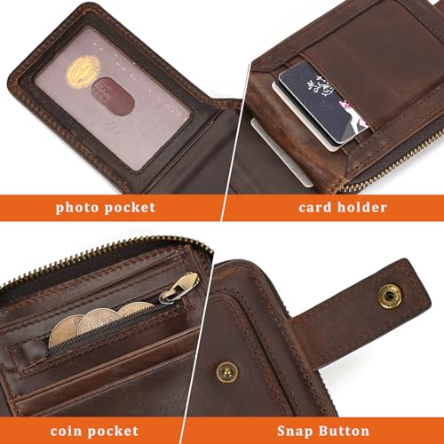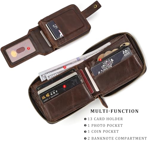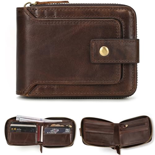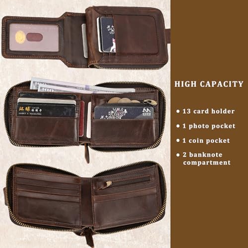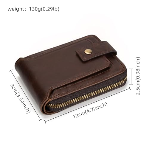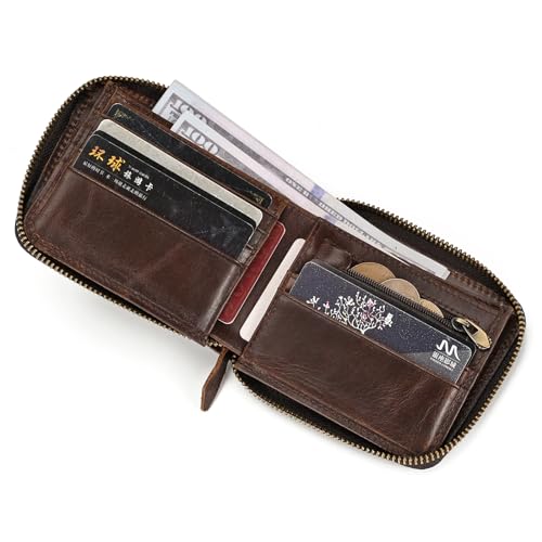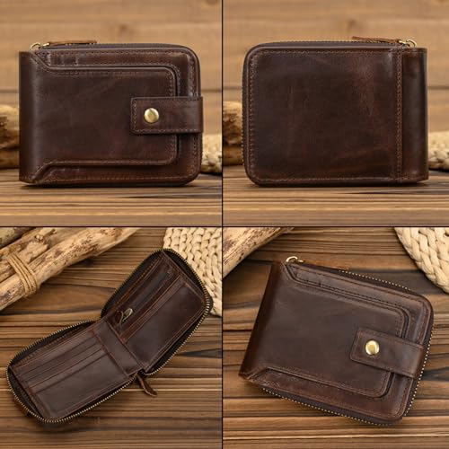 Echt Lederen Rits Portemonnee voor Mannen, RFID Blokkerende Mens Portemonnee met Coin Pocket ID Venster Rits Portefeuilles Grote Capaciteit, Koffie, S, Retro