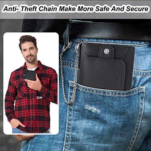 Specificaties: Heren portemonnee van leer, RFID-blokkering, herenportemonnee met ketting, kleine portemonnee voor heren en kaartvakken, klassieke muntvak, portemonnee, geschenkdoos