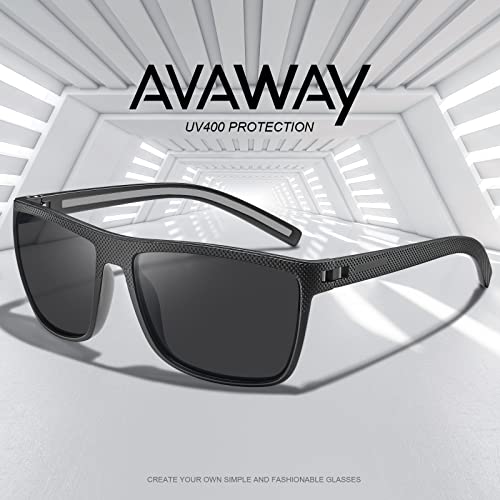 AVAWAY Sport UV-bescherming Zonnebril Mens Gepolariseerd Metalen Frame Rijden Vissen Running Fietsen UV400, E1 Zwart Frame – Grijze Lens, Medium