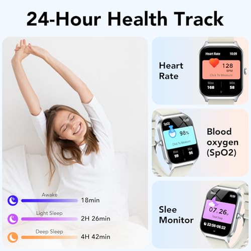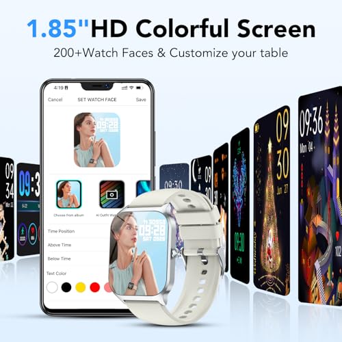CASCHO Smartwatch voor dames en heren, 1,85 inch HD-display, fitnesstracker met slaapanalyse en SpO2 * Bluetooth oproepen, 30 dagen batterijduur, IP68 waterdicht, compatibel met iOS/Android. Topfuncties: hoogwaardig display 1,85 inch (4,7 cm) HD-kleuren-touchscreen met 5 helderheidsniveaus, krasbestendige displayafdekking + 200+ wijzerplaten via “Da Fit”-app (eigen foto’s als achtergrond) Intelligente versie Bluetooth 5.3 smartwatch voor stabiele verbinding, oproepmanagement direct op de pols (aannemen/afwijzen/selecteren) met microfoon en luidspreker, real-time meldingen voor WhatsApp, Messenger, SMS 24/7, gezondheidsbewaking, nauwkeurige slaapmonitor (diepe / lichte slaap, waakfasen), hartslagmeter + zuurstofgehalte in het bloed (SpO2) meting vrouwengezondheid: menstruatiecyclustracker met promotiecuratie gnose sportprofi met 115+ modi, fitnesstracker met stappenteller en calorieënteller, IP68 waterdicht sporthorloge voor zwemmen, douchen, regen, 3-assige sensor voor nauwkeurige registratie van stappen, afstand en activiteit, extra lange batterijduur, tot 7 dagen gebruik en 30 dagen stand-by (300 mAh). Praktische tools: weersvoorspelling, muziekbediening, afstandsbediening voor foto’s compatibel met iPhone en Android