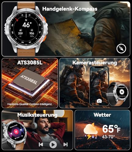 Militaire kwaliteit: je robuuste metgezel: deze gps smartwatch van speciaal metaal heeft militaire extreme tests: bestand tegen hitte, kou, druk en zand. Gemaakt voor avonturen en de zwaarste omstandigheden. Met een briljant 1,43-inch AMOLED-display en veelzijdige aangepaste wijzerplaten – zelfs met persoonlijke foto’s. Jouw stijl, jouw regels.
