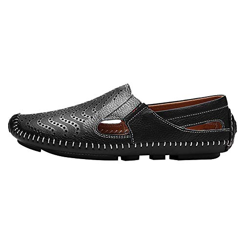 ANUFER Mannen Ademend Echt Leder Uitgeholde Zomer Platte Loafers Aantrekken Mocassins Rijden Schoenen