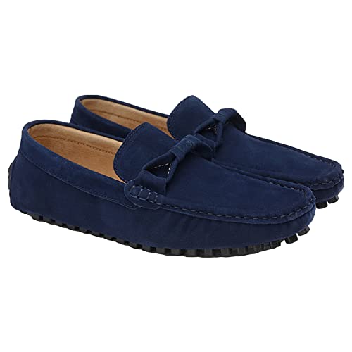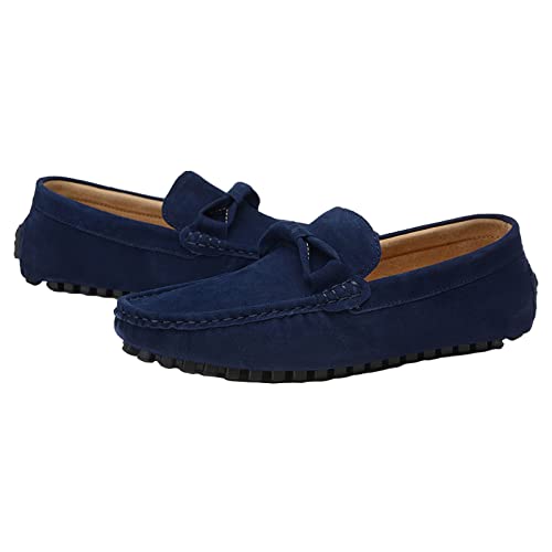 ANUFER Mannen Stijlvolle Suede Lederen Loafer Flats Comfort Rijschoenen Mocassin Slippers, Donkerblauw, 41.5 EU