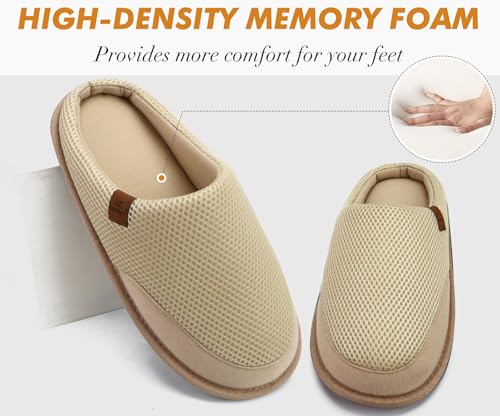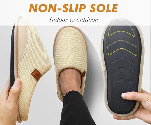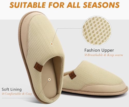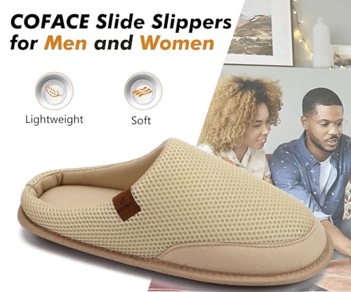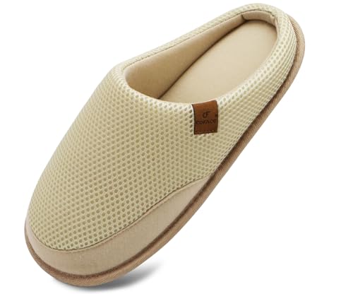 COFACE Mens Gezellige Memory Foam Scuff Slippers Uninex Casual Slip Op Warm Huis Binnen/Outdoor Schoenen Vilt Sandaal Slippers Met Boog Ondersteuning Rubber Zool maat 6.5-14, Stijlvol Beige, 42.5 EU
