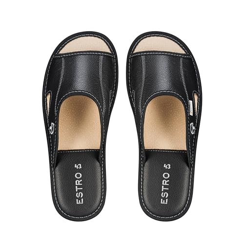 ESTRO Herenpantoffels Huisschoenen Leer Thuis Instappantoffels Herenslipper Memory Foam Traagschuim VERANO