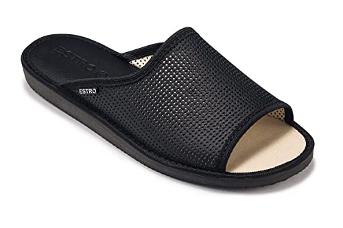 ESTRO Pantoffels Heren Sloffen Heren – Open Teen Pantoffels Leer Huis Slippers Leer F19