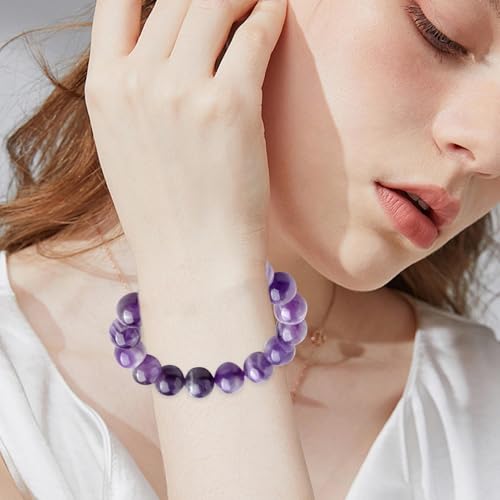 Amethyst Bracelet for Women – genuinne Crystal Beaded Braccelet, 8mm Amethysts Stone Elastic heealing Bracelets | Suitable for Women Meditation Relaxation Birthday Celebration Casual Outfit Wear