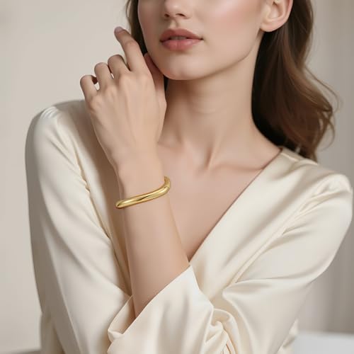Emibele Gold Bangles for Women, 3PCS Irregular Chunky Gold Bracelet Set Hinged Open Bangle Bracelets for Women, Trendy Wide Arm Cuff Minimalist Chunky Jewelry Gifts for Valentine Christmas Birthday