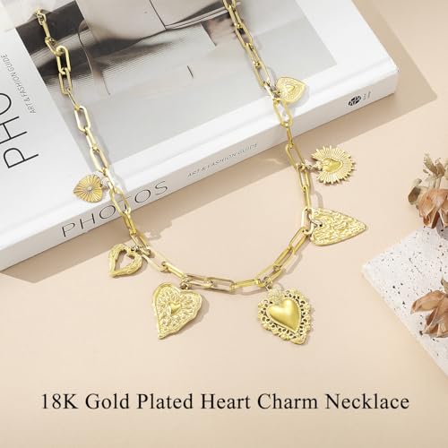 Emibele Heart Charm Necklaces for Women, Chunky Gold Necklace with Bohe Hearts Pendants, 18K Gold Plated Stainless Steel No Tarnish Gold Heart Necklace, Dainty Jewelry Gifts for Women