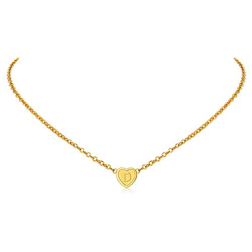 FOCALOOK Dames 18K Goud Geplateerde Initiaal Ketting, Kleine Harthanger D Letter Ketting, Goud Choker Ketting, Gepersonaliseerd Alfabet Sieraad
