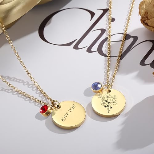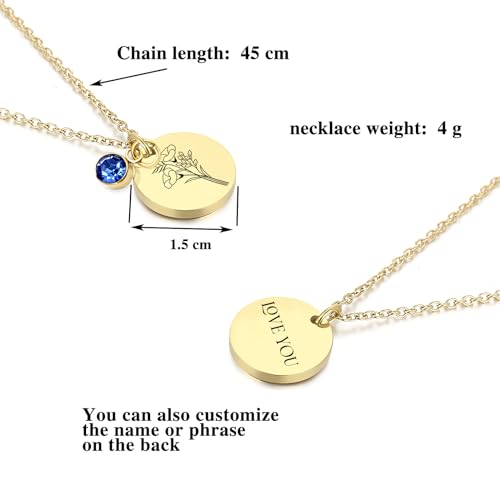 Gepersonaliseerde verjaardagskettingen, geboortesteen halskettingen, gepersonaliseerde naamkettingen, verjaardagscadeaus, cadeaus voor moeders en dochters, Roestvrij staal