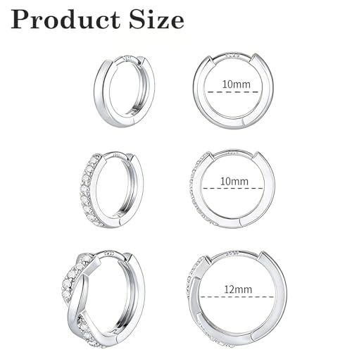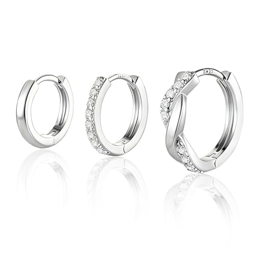 3 Stuks Creolen Zilver 925 Klein voor Dames Oorbellen Set, Zilver 925 Zirkonia Helix Creolen, Dames Kleine Oorknopjes C-reolen Stapelbaar, Oorbellen Set voor Meerdere Piercings