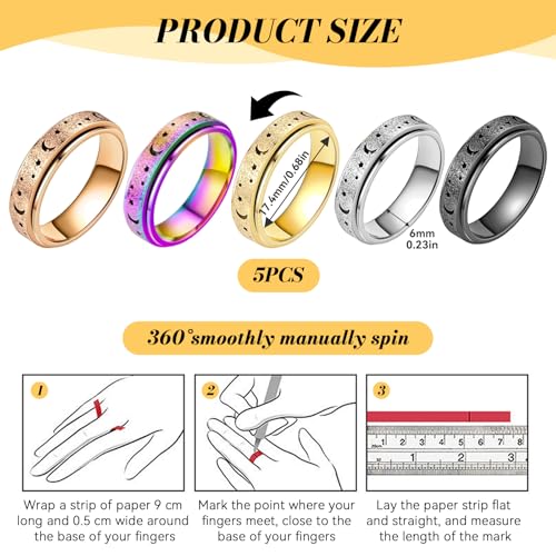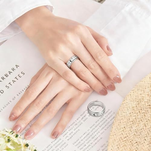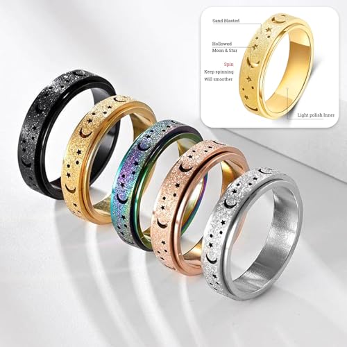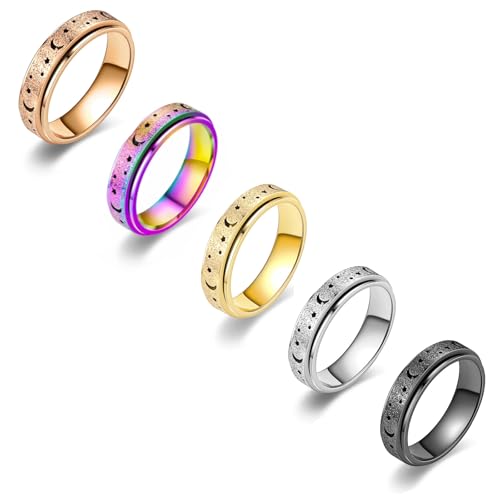 5 stuks anti-stress ringen, titanium stalen angst ring voor dames en heren, maanster zand blast finish anti-angst ringen, voor verlichting van stress en angst, Valentijnsdag, verjaardag