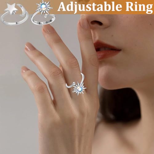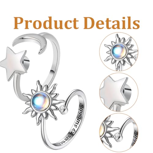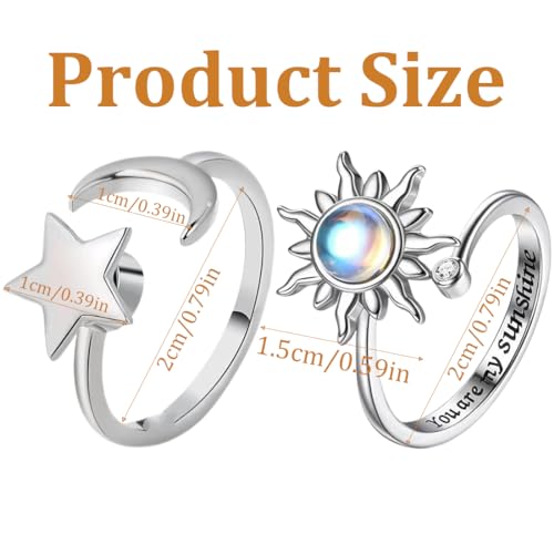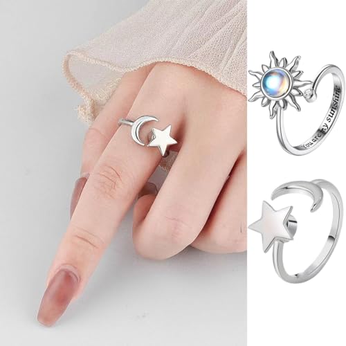 Stress ringen voor dames: de mooie fidget angst ringen hebben een spinner-design, je kunt de ster of de zon draaien als je je angstig voelt, waardoor je stress effectief wordt verminderd. De ringspinner kan ook helpen om je kwijt te raken, vingers en bijtende nagels, een mooie filipp voor stressvermindering.