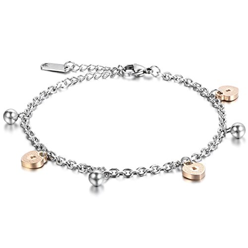 Plaats de eerste recensie voor “Cupimatch Enkelbandje van roestvrij staal, roségoud, zilver, hartjes, klokken, hanger, enkelketting, armketting voor dames, meisjes en vrouwen, 24 cm, Roestvrij staal, zonder steen”