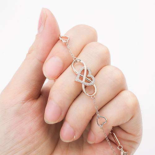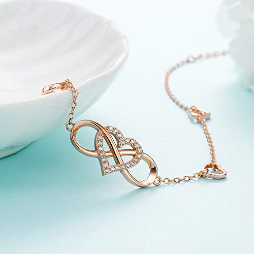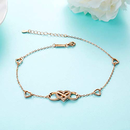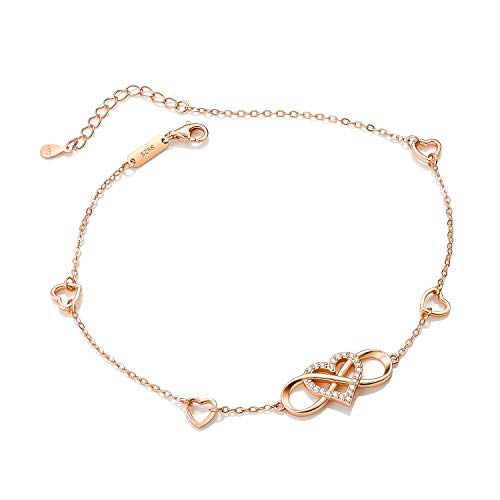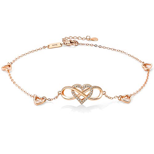 Enkelbandje voor dames, oneindigheidsteken, 925 sterling echt zilver, sieraden voor vrouwen en meisjes, glitter, roségoud, hart, enkelband, oneindigheid, oneindigheid, cadeau voor vakantie, verjaardag