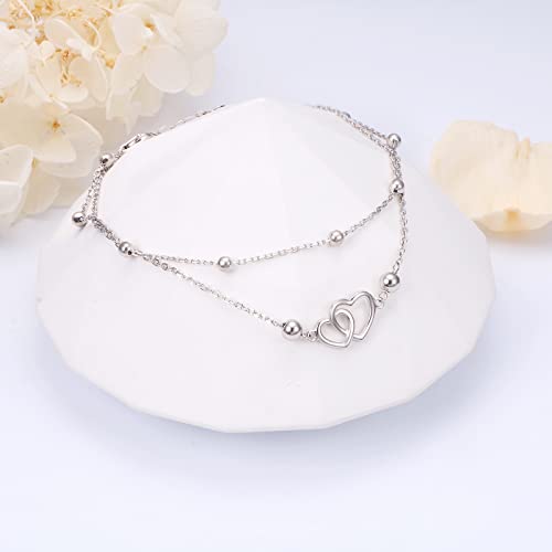 Liefde hart enkels voor vrouwen 925 sterling zilver dubbele gelaagde enkel armband verstelbare strand stijl blootvoet ketting sieraden verjaardagscadeaus voor tienermeisjes