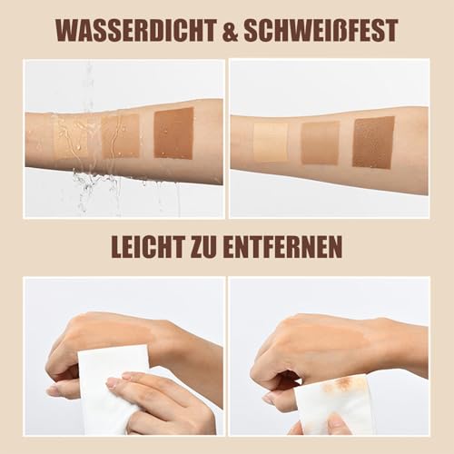 Waterdicht en duurzaam: de been-make-up zonder overdracht is waterdicht en duurzaam, of het nu in de hete zomer of in de winter is, de waterdichte formule van de lichaamsmake-up zorgt voor het langst aanhoudende make-up-effect. Je hoeft je geen zorgen te maken over het verwijderen van make-up.