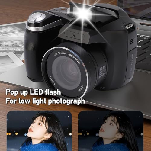Professionele 4K DSLR -camera met 60MP -resolutie, 12x Optische Zoom, Ingebouwde Flitser, Eenvoudige Scènemodi voor Prachtige Foto’s en Video’s (BLACK)